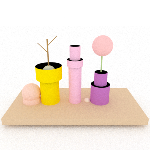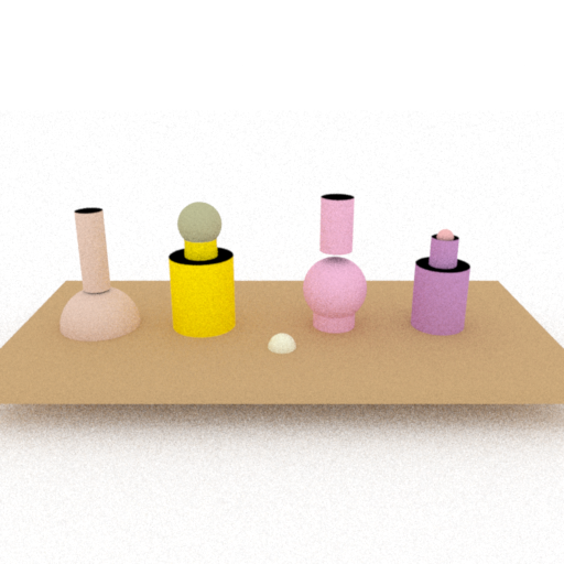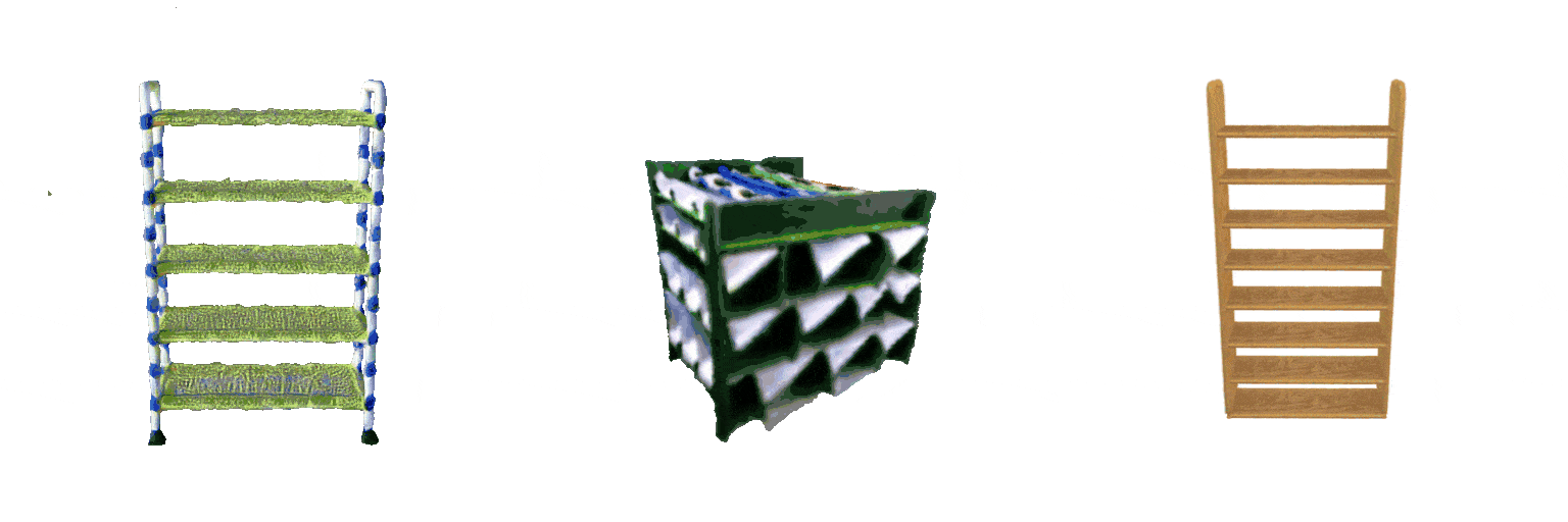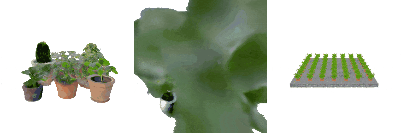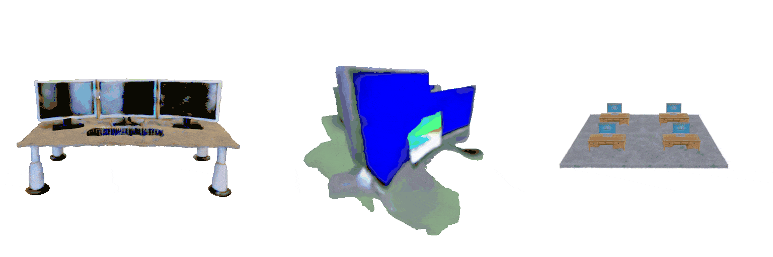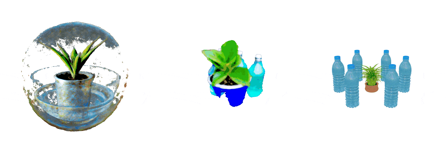 We evaluate our method on text-conditioned 3D generation tasks via a user study across 9 scenes shown below. We compare with two baseline methods: GraphDreamer [6], which uses scene graphs for intermediate representation, and MVDream [7], which directly generates scenes from text inputs. Input text prompts are show below output renderings. Our method achieves more favorable prompt alignment than the baselines and has a clear advantage in counting accuracy.