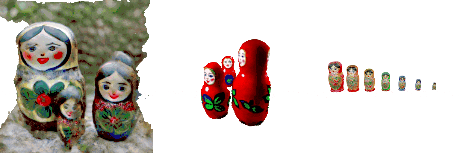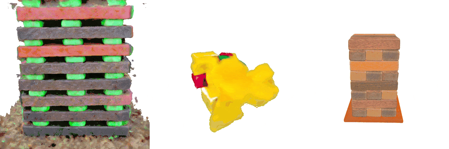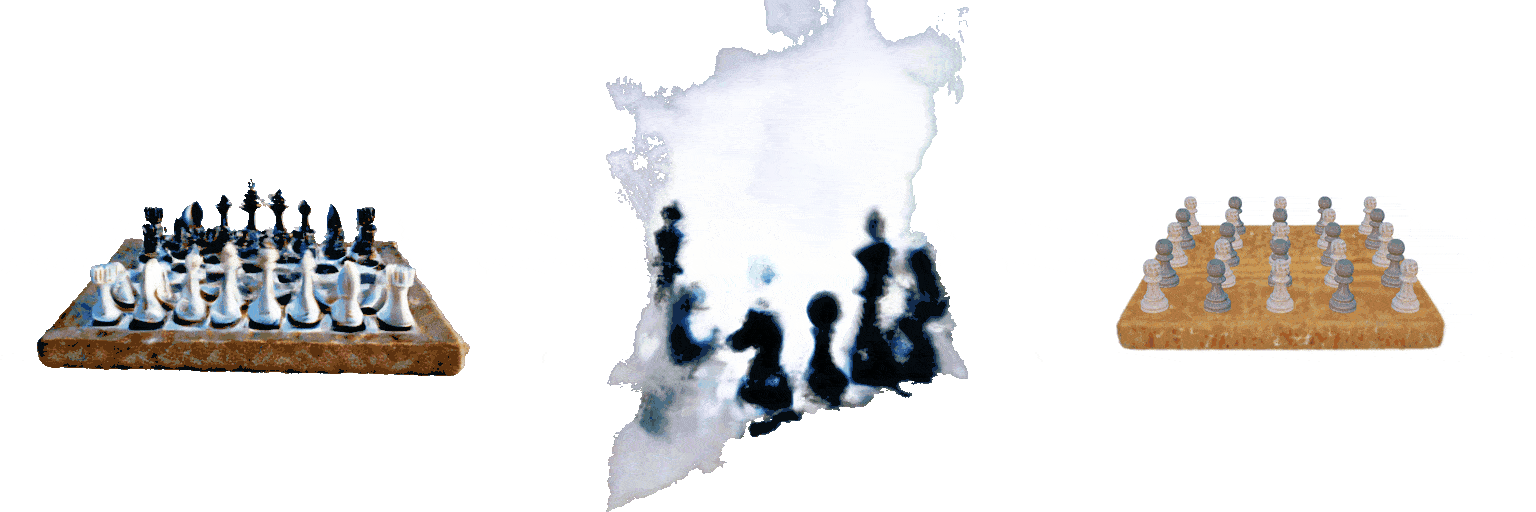 The proposed representation captures the structure not only for static, but also for dynamic scenes, and can be applied for synthesizing 4D scenes conditioned on text inputs. Comparisons with a 4D synthesis method, 4D-fy [8], are shown below. Different from 4D-fy which uses and implicit 4D representation, ours explicitly represents the temporal correspondence of entities—Click the button below for tracking visualizations.